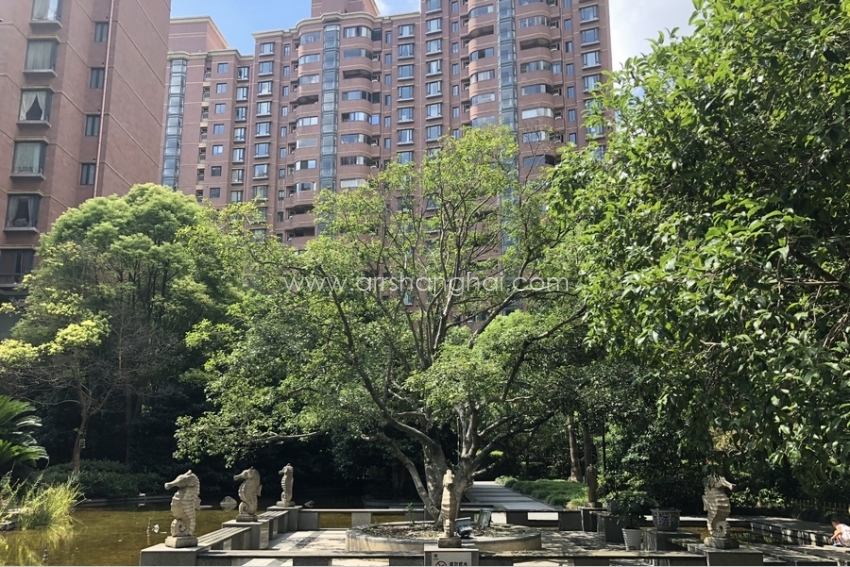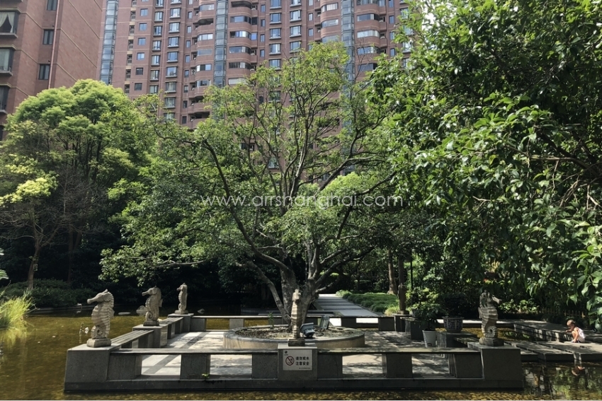 The Qiansheng Gubei Garden is staffed by a fantastic staff who screen visitors and direct them to the correct building and parking area. The design of the buildings and the surrounding greenery is a delightful blend of well-maintained, modern apartment buildings and details reminiscent of a bygone era. Seals are perched above each entrance, and some buildings are framed by wide columns. The central park area is overgrown, in a purposefully way. And there are also seahorse statutes, twisting trees, and a maze wrapped around a white gazebo. The effect is charming and, as a result, its seven high rise buildings have a high occupancy rate and a diverse group of residents.