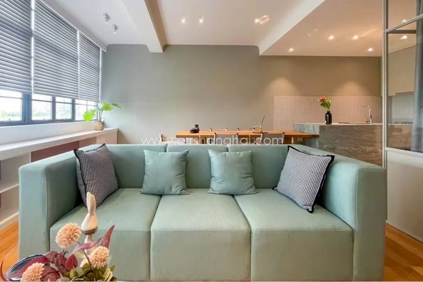This impressive two bedroom Shanghai old apartment is set on the fourth floor and boasts space perfect to entertain and a full width living room and modern open kitchen.